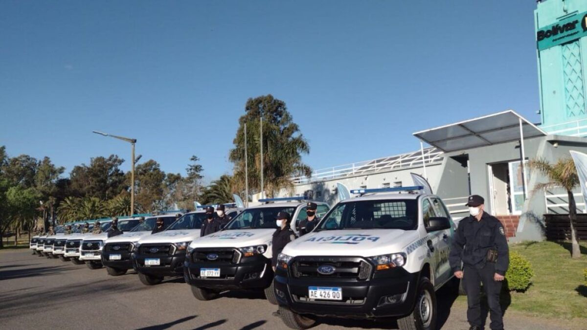 Después de las 18 horas, Kicillof hizo entrega de cuatro móviles para la policía y seis para el comando de prevención rural en el Parque Municipal Las Acollaradas junto al ministro de Seguridad de la Provincia, Sergio Berni.