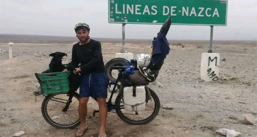 Nicolás Terrera es un joven bolivarense que, luego de una primera experiencia, en 2018 emprendió un viaje para recorrer Sudamérica. Desde entonces se movió a dedo hasta que armó una bicicleta en la que carga su equipaje y transporta también a Zazú, su perrita. En la actualidad se hospeda en la ciudad de Santa Cruz de la Sierra, Bolivia, lleva hasta el momento 8000 kilómetros pedaleados y su objetivo es volver a Bolívar en bici.