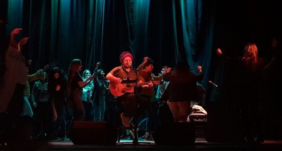 Ya lo había anticipado al promediar el recital y llegó el momento de “armar un bailongo”. Invitó a quienes quieran bailar y rápidamente se llenaron el escenario y los pasillos del teatro. Raly amenizó el momento con una seguidilla de chacareras que empezó con “Chacarera del exilio”.