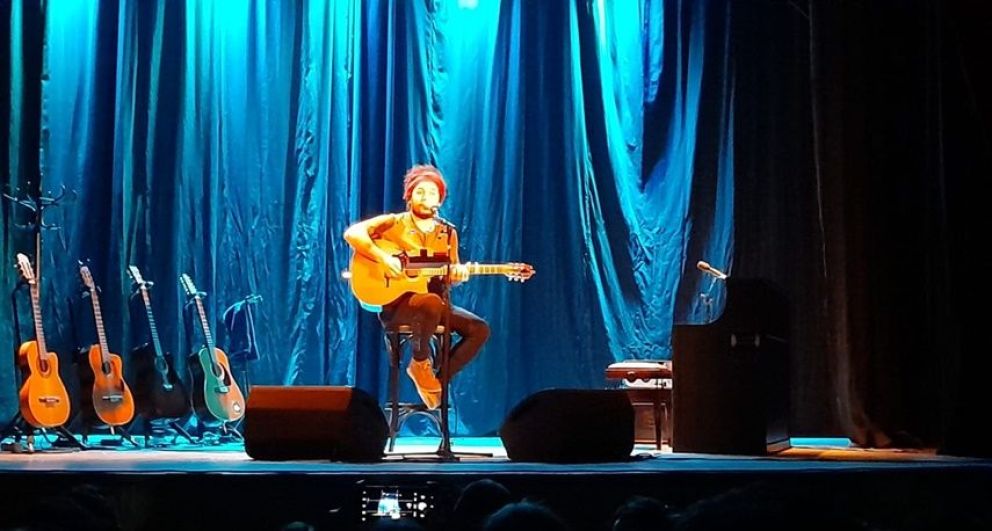 Así, en su presentación adelantó que no sabía con cuál iba a empezar y desde el público llegó la propuesta. “Zamba y acuarela”, una de las más conocidas que bien puede ser parte del final de un recital, fue la que inició su visita a Bolívar.