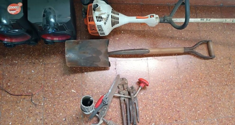 Entre los objetos secuestrados se encontraron un cuchillo, herramientas de mano estriadas y de boca, una motosierra, una moto guadaña, una hidro lavadora, una soldadora, dos tijeras de tusar, una cabezada, una rienda, un bozal y freno de acero inoxidable, un ventilador y teléfonos celulares de los investigados.