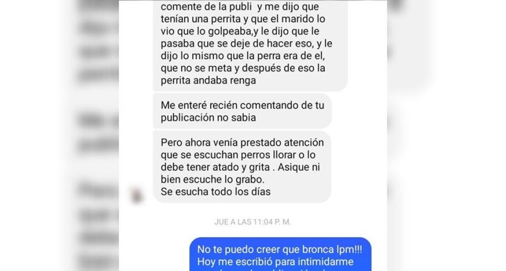 En el mismo sentido, la denunciante expresó que "es increíble que no me quieran tomar la denuncia, que no pueda denunciar a alguien que realemnte está haciendo algo malo y tenga que callarme, que quede todo en la nada mientras ese pobre animal sigue sufriendo los abusos".