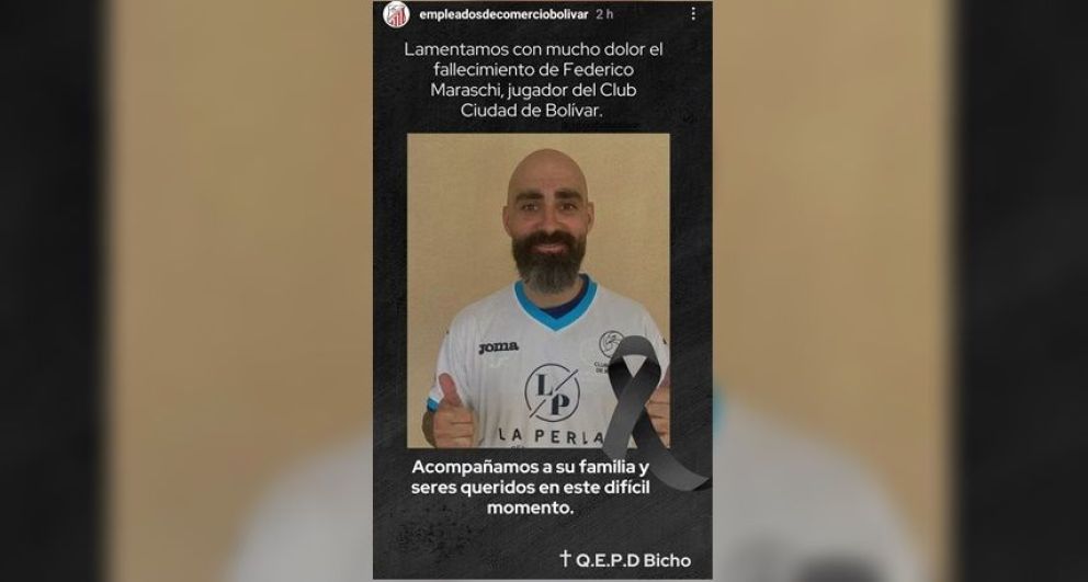 Este jueves se conoció la noticia del fallecimiento de Federico Maraschi, futbolista del Club Ciudad de Bolívar. El jugador tenía 38 años y fue encontrado sin vida en un domicilio de la calle Alvear.