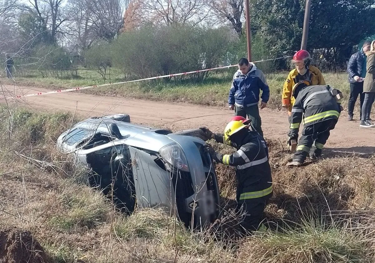 Tras el impacto, el rodado de menor porte sufrió un vuelco y cayó dentro de una cuneta. Su conductora tuvo que ser rescatada por personal de Bomberos Voluntarios y luego derivada al hospital de la localidad.