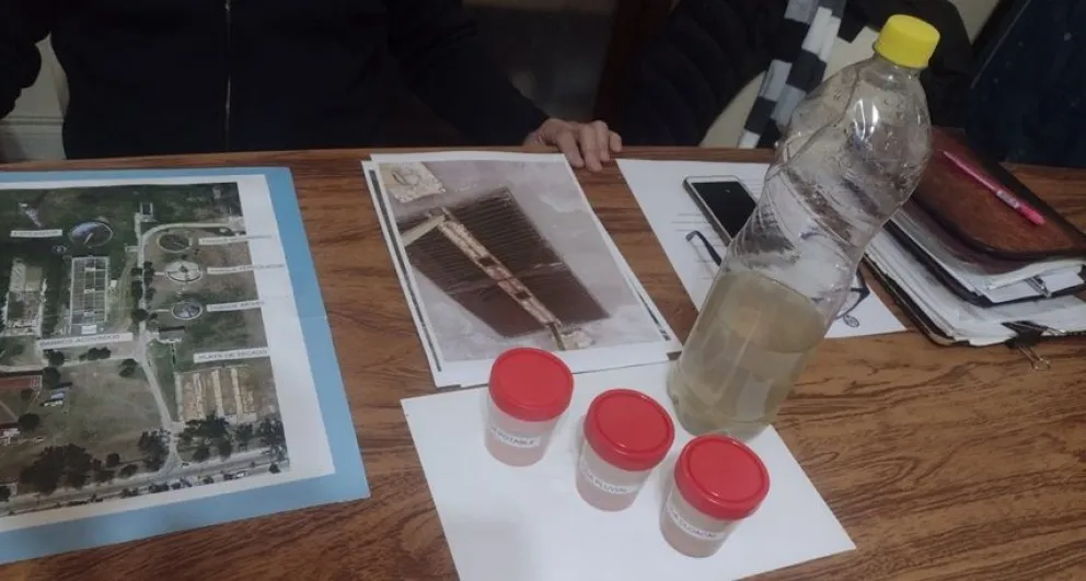 El legislador mostró un plano de la planta y explicó que hay una vieja y una nueva. “Una funciona prácticamente al 60 y la otra al 40 por ciento. El agua entra a las dos plantas y tiene que pasar por un sistema que tendría que estar funcionando”, sostuvo mientras mostró fotografías del estado actual de las instalaciones.