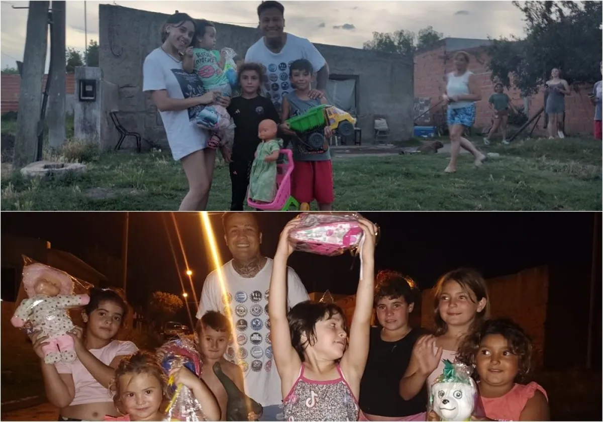 Los regalos fueron para niños y niñas de barrio Villa Diamante, barrio Colombo, barrio María del Carmen, barrio Latino, barrio Palermo y otros sitios más que recorrieron. Matías no precisó por dónde seguirá la entrega, pero aseguró que no llegaron a dar todo porque eran muchos juguetes.
