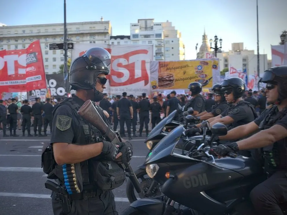La imagen número 4, por caso, retrata a un efectivo de la Policía Federal "identificado como Ceballos, de la GDM, portando en la cintura un arma letal no permitida para la disuasión de disturbios", explicó el trabajador de prensa.
