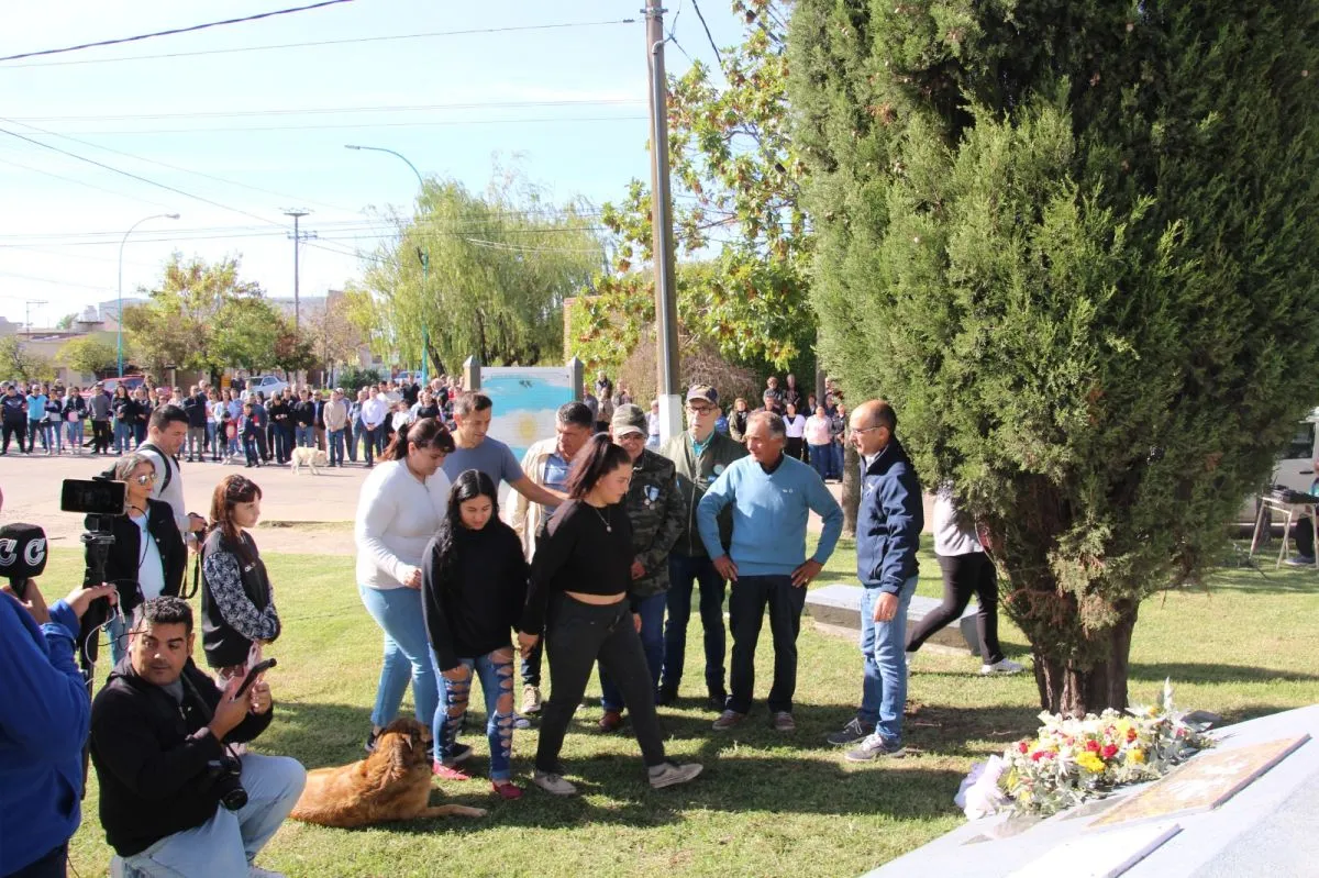 Estudiantes de la Escuela Secundaria N° 5 "Héroes de Malvinas", junto al jefe Distrital de Educación, Luciano Villarreal; al intendente de Bolívar, Marcos Pisano y al senador provincial, Eduardo Bucca depositaron una ofrenda floral al pie del monumento a los veteranos y caídos en la Guerra de Malvinas.