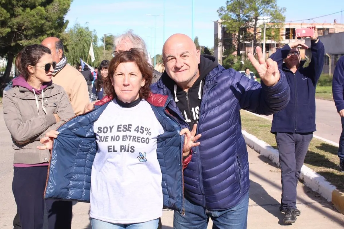 Finalmente, los presentes se nuclearon en las escalinatas del ingreso al CRUB donde se tomaron una foto grupal mientras confluían con cánticos al grito de "Unidad de los trabajadores, y al que no le gusta, se jode".
