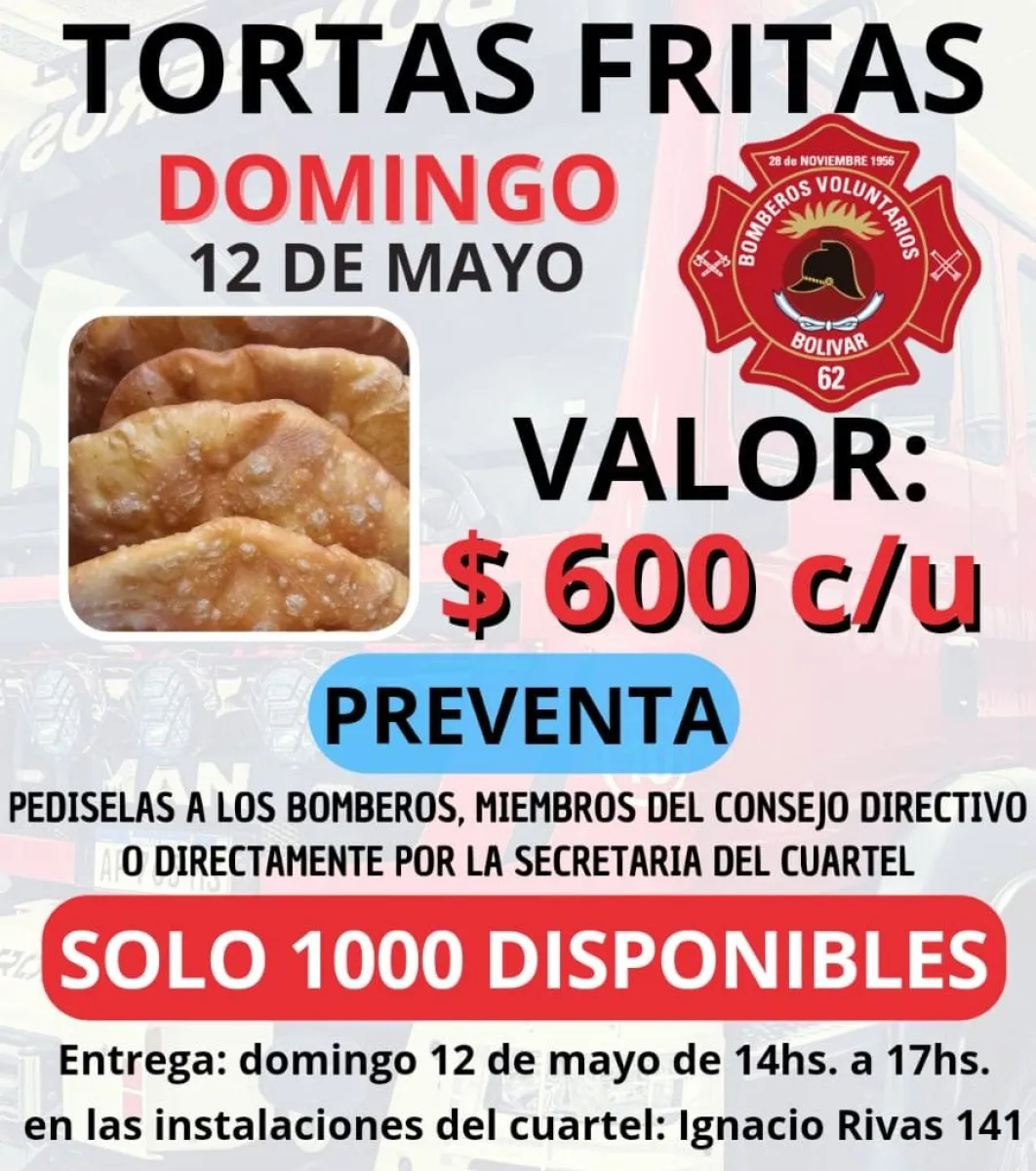 A través de sus canales oficiales y por las redes sociales, Bomberos Voluntarios de Bolívar lanzó una nueva venta de tortas fritas y en el anuncio dieron detalles de cómo encargarlas, teniendo en cuenta que solo se harán mil. La preventa ya está habilitada.