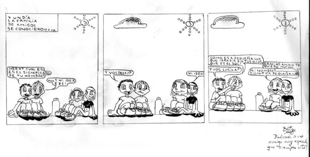 'Pochocho, 'Herny', 'Lulu' y 'Delfi' conformaron una familia de amigos. Pochocho pregunta a cada uno el significado de sus nombres pero sólo una de ellos lo sabía. La tira creada por 'Boty' está dedicada a quien considera una amiga que siempre estuvo.