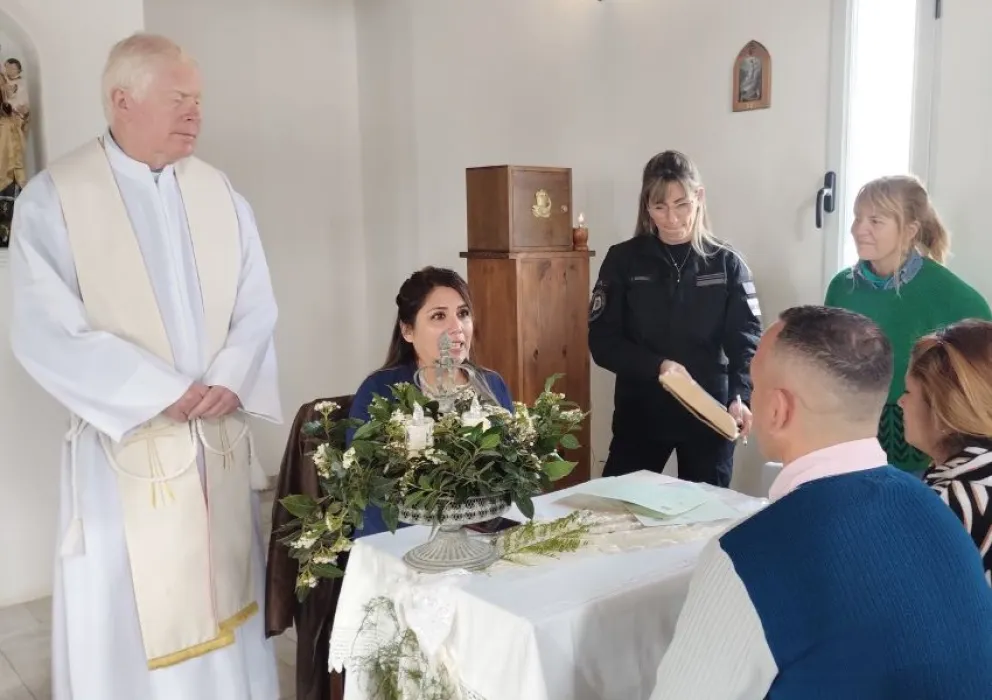 El cura párroco "dio la bendición correspondiente con unas hermosas y cálidas palabras y bendijo los anillos de los contrayentes" en la Capilla "San José" del penal, expresaron las autoridades penitenciarias.