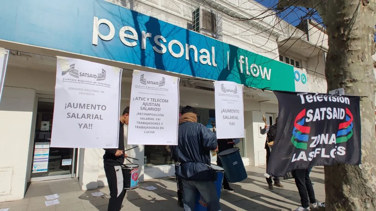 Este jueves promediando las 10 de la mañana una delegación del Sindicato Argentino de Televisión, Servicios Audiovisuales, Interactivos y de Datos (SATSAID) se presentó en las puertas de Personal Flow en Bolívar para reclamar por actualizaciones salariales. Según informaron, la empresa mantiene sueldos congelados desde hace dos meses.