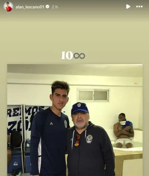 A través de las redes sociales, el bolivarense Alan Lescano recordó a Diego Armando Maradona en el día que cumpliría 64 años con una significativa foto. El mediocampista, que hoy viste la camiseta de Argentinos Juniors, lo tuvo como director técnico en Gimnasia y Esgrima La Plata.