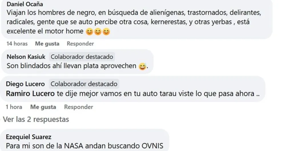 Pero también se dieron comentarios graciosos de personas que eligieron el humor para crear sus propias especulaciones sobre el camión. “Andan cazando alienígenas y también preguntones”, “es de los grupos especiales”, “son blindados, ahí llevan plata, aprovechen” y “para mí son de la NASA andan buscando OVNIS”, fueron algunos de ellos.