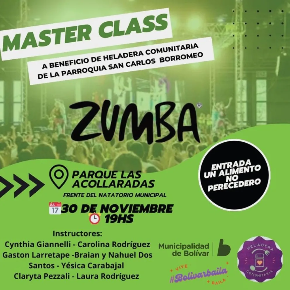 Este sábado 30 de noviembre en el parque Las Acollaradas tendrá lugar una master class de zumba a beneficio de la heladera comunitaria de la parroquia San Carlos Borromeo. La iniciativa está destinada a personas de todas las edades que podrán acceder con el aporte de un alimento no perecedero.