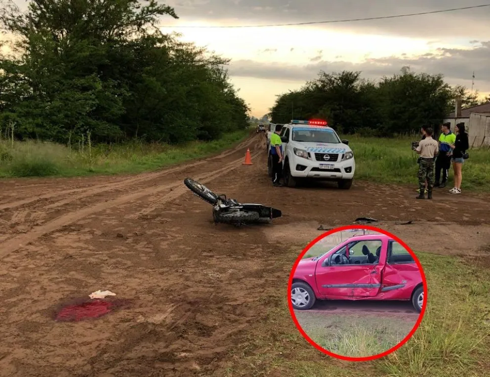 Grave accidente: moto chocó contra un auto en camino de tierra y el conductor fue hospitalizado