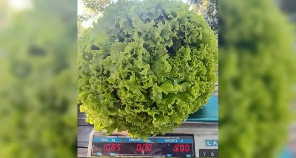 El productor hortícola agroecológico Flavio Surós tiene su huerta en Henderson, camino a Herrera Vega, y en enero de 2024 su nombre fue noticia ya que cosechó una planta de lechuga crespa de 575 gramos. El último sábado superó ampliamente esa marca al sacar una que pesó más de un kilo.