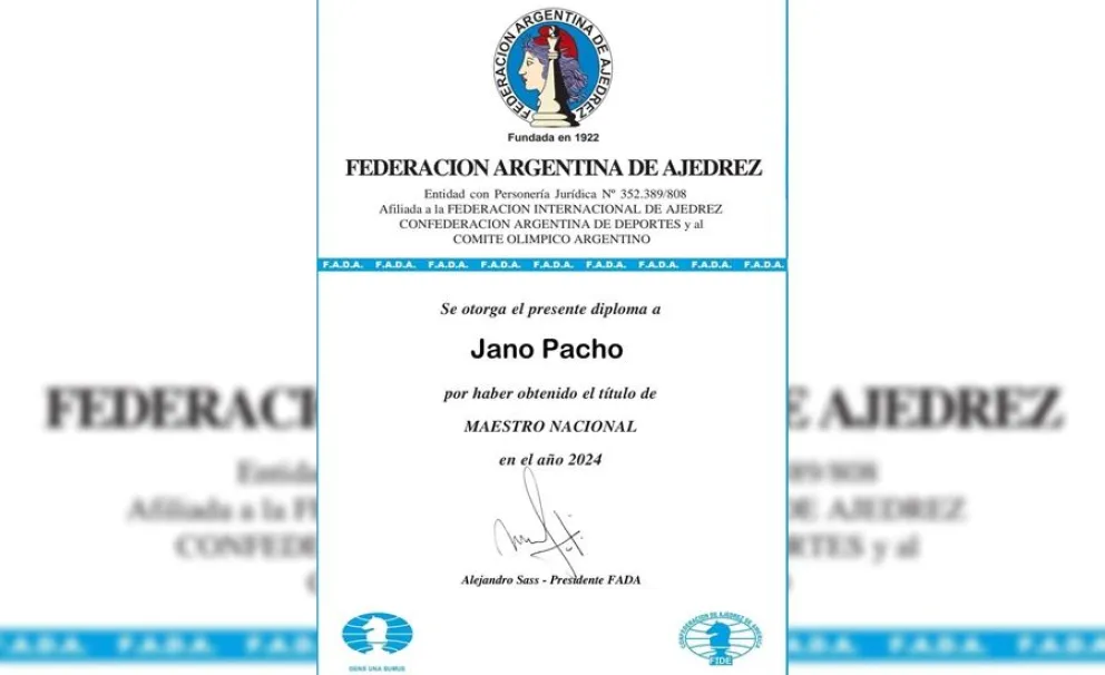 Para terminar de coronar un gran año en el deporte, Bolívar tiene al primer titulado en la historia del ajedrez y se trata de Jano Pacho, quien recibió el nombramiento por parte de la Federación Argentina de Ajedrez: se convirtió en Maestro Nacional.