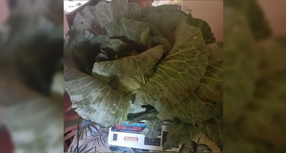 Un productor de la zona cosechó un repollo gigante que pesó casi 10 kilos