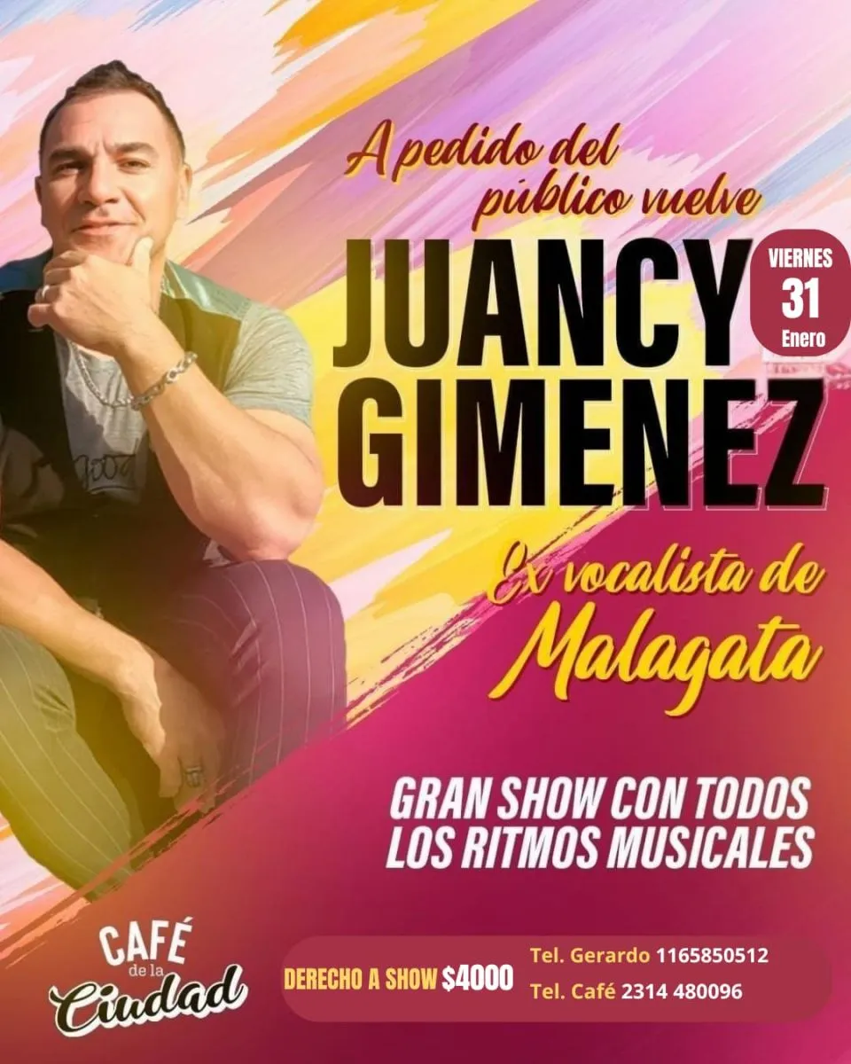 El plan ideal para la noche de este viernes 31 de enero está en el Café de la Ciudad, con una cena show que tendrá la presentación del artista Juancy Giménez, que llega nuevamente a Bolívar con un gran repertorio y temas de todos los estilos musicales.
