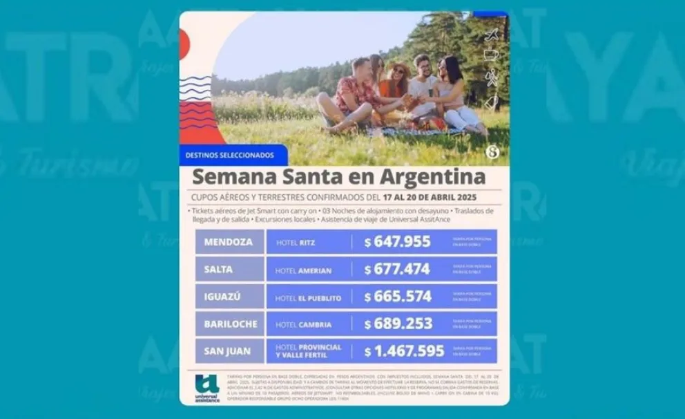 Del 17 al 20 de abril, Semana Santa en Argentina es sinónimo de viaje junto a Yaatra Turismo. Los destinos seleccionados por la agencia de viajes para esta fecha especial son Mendoza, Salta, Iguazú, Bariloche y San Juan.