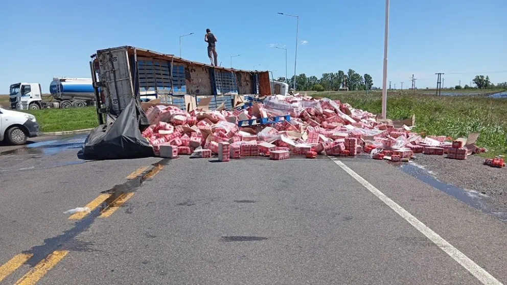 Volcó un camión cargado con cervezas en Ruta 226 y los vecinos se llevaron todo
