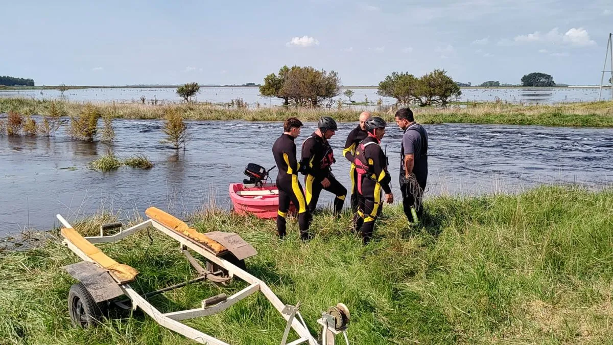Bomberos Voluntarios trabajan en el lugar y personal especializado en rescate acuático colabora con la búsqueda de las personas caídas en el canal.