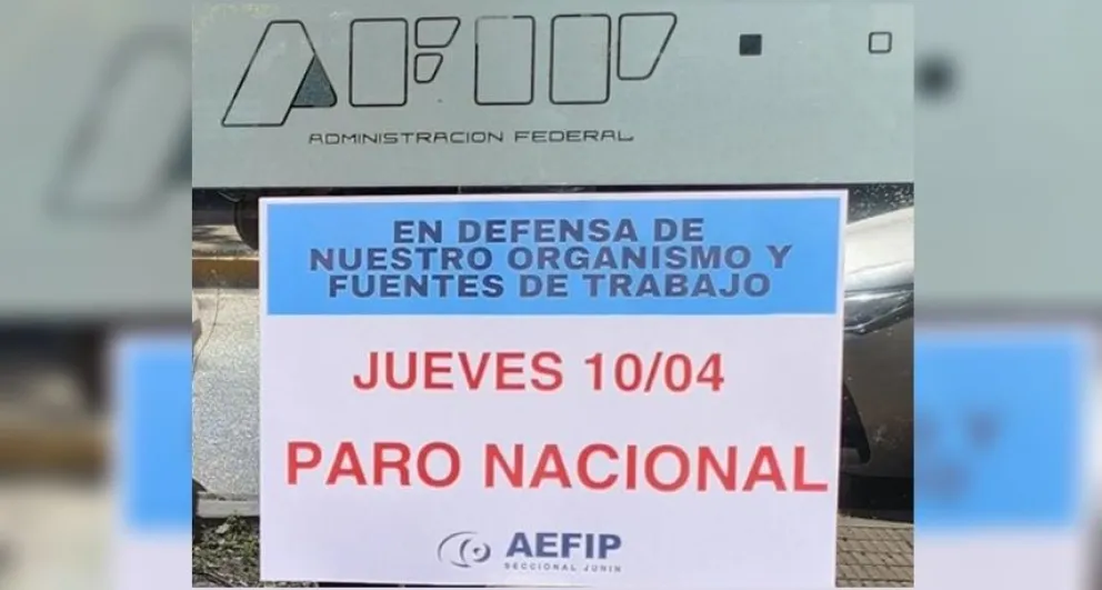 A su vez, la oficina de Afip ubicada en la avenida San Martín anunció que se sumará al paro nacional el jueves “en defensa de nuestro organismo y fuentes de trabajo”. Cabe recordar que en pocos días hábiles comienza a regir la disposición del Gobierno Nacional que ordenó el cierre de la oficina de Bolívar.