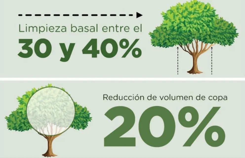 La Municipalidad especificó que la limpieza basal deberá tener un límite del 40%, mientras que la reducción de copa no podrá superar el 20%.