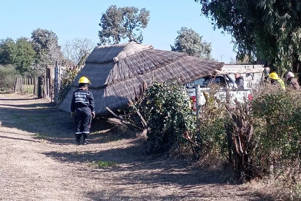 Al llegar al lugar, se trató del techo de un quincho que cayó sobre una camioneta que estaba debajo. Bomberos levantaron la estructura para poder retirar el vehículo.