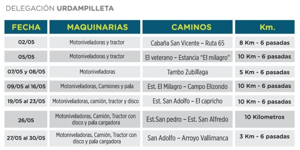 También, se informaron los trabajos realizados en las localidades de Urdampilleta y Pirovano.