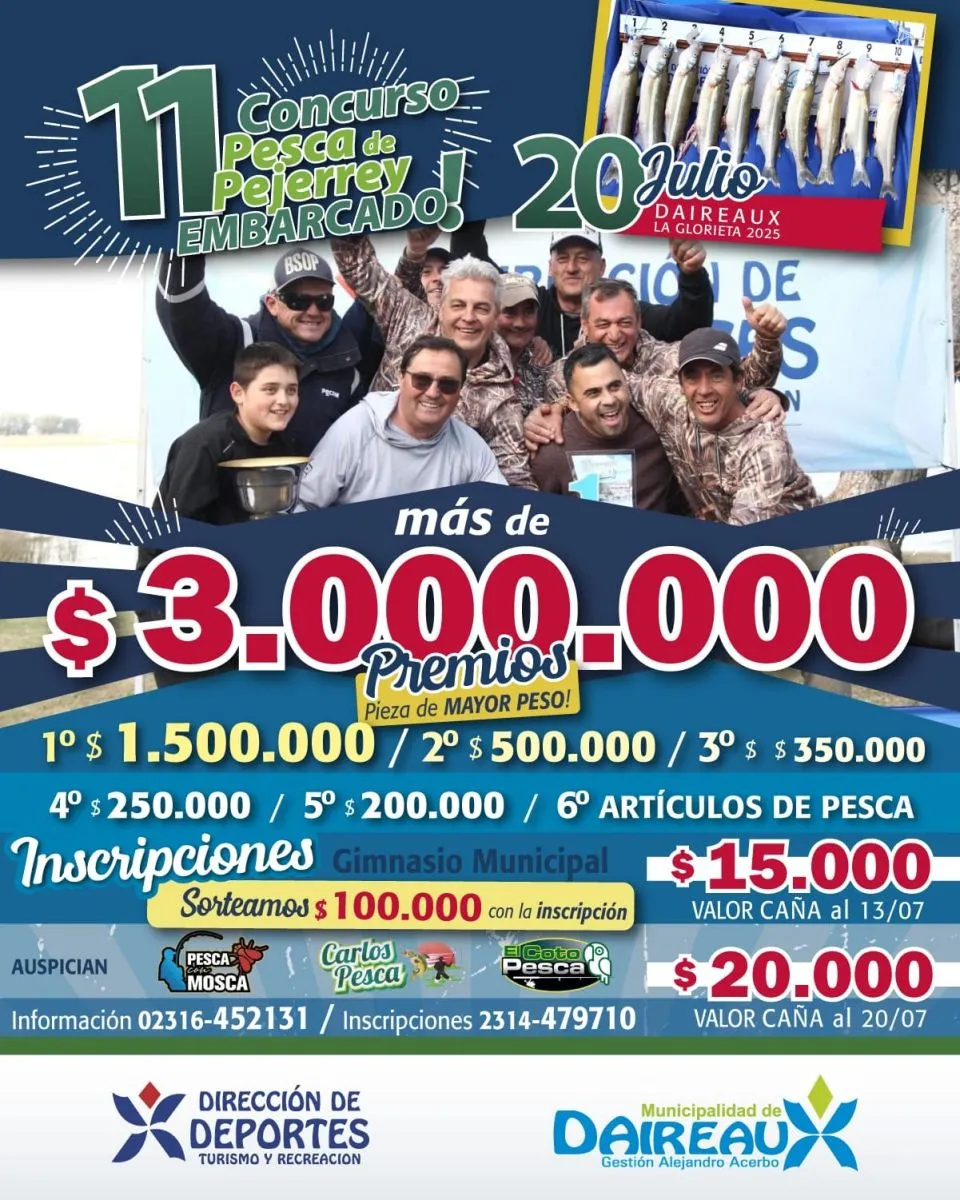 Cabe destacar que las inscripciones se encuentran abiertas y pueden realizarse en el Gimnasio Municipal Islas Malvinas de la localidad de Daireaux. Los interesados en concurrir al certamen también pueden comunicarse al 2314479710. El valor de la inscripción es de 15.000 pesos por caña, hasta el 13 de julio. Por su parte, para quienes completen la inscripción durante la semana previa al 20 de julio, el valor será de 20.000 pesos.