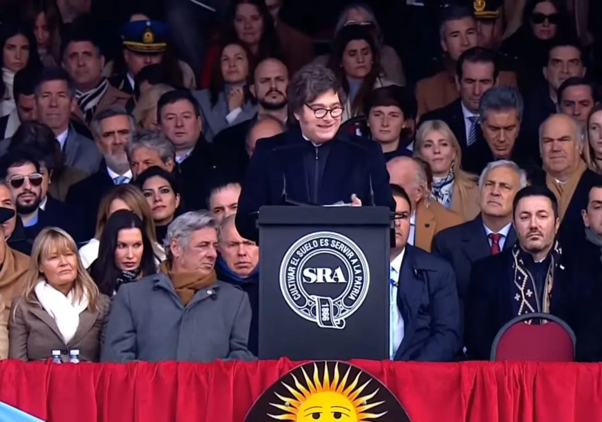 Este sábado tuvo lugar la ceremonia de apertura de la muestra de la Sociedad Rural de Palermo. El mandatario Javier Milei participó del evento junto al ministro de Defensa, Luis Petri, al ministro de Economía, Luis Caputo y su hermana Karina Milei. En su discurso el presidente anunció la baja permanente de retenciones.