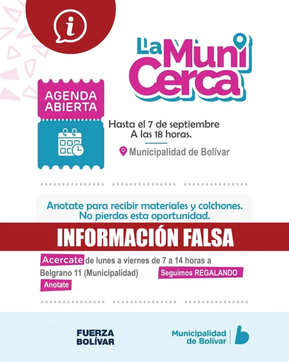 La Municipalidad de Bolívar denunció la circulación de una fake news: "Los mismos de siempre"