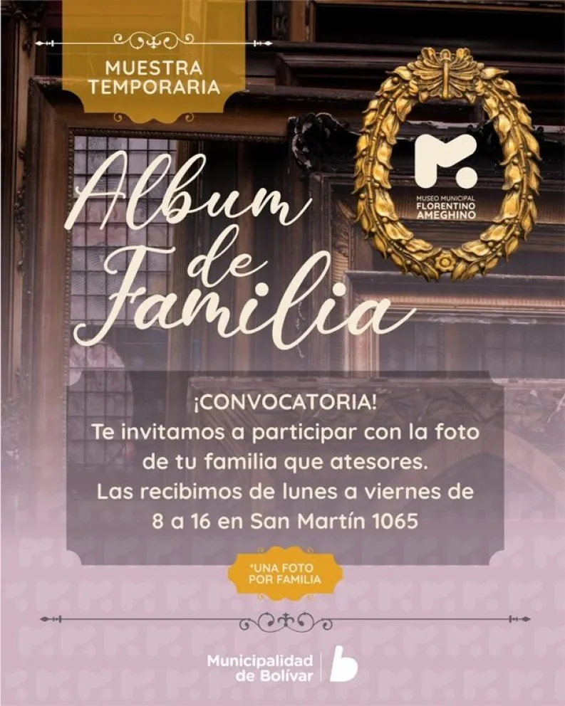 El Museo Municipal Florentino Ameghino lanzó una convocatoria con el objetivo de armar un gran álbum de la familia bolivarense a través de una reconstrucción fotográfica con participación comunitaria. Enterate cómo sumarte a la iniciativa.