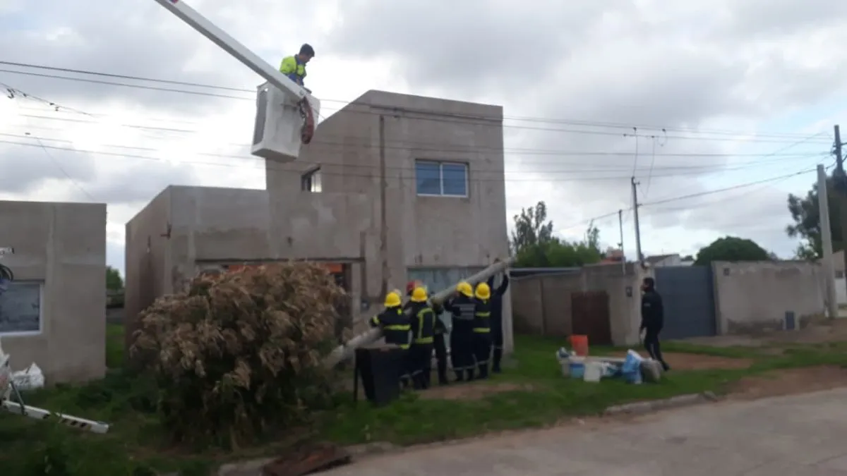 Una dotación de Bomberos Voluntarios y el área de Defensa Civil se hizo presente por el incidente. Con una grúa, cortaron los cables de la parte superior del poste y al terminar de desprender la base del mismo, lo dejarán sobre el suelo. La avenida Centenario, en dirección al Estadio Municipal, quedó cortada al tránsito de manera momentánea.