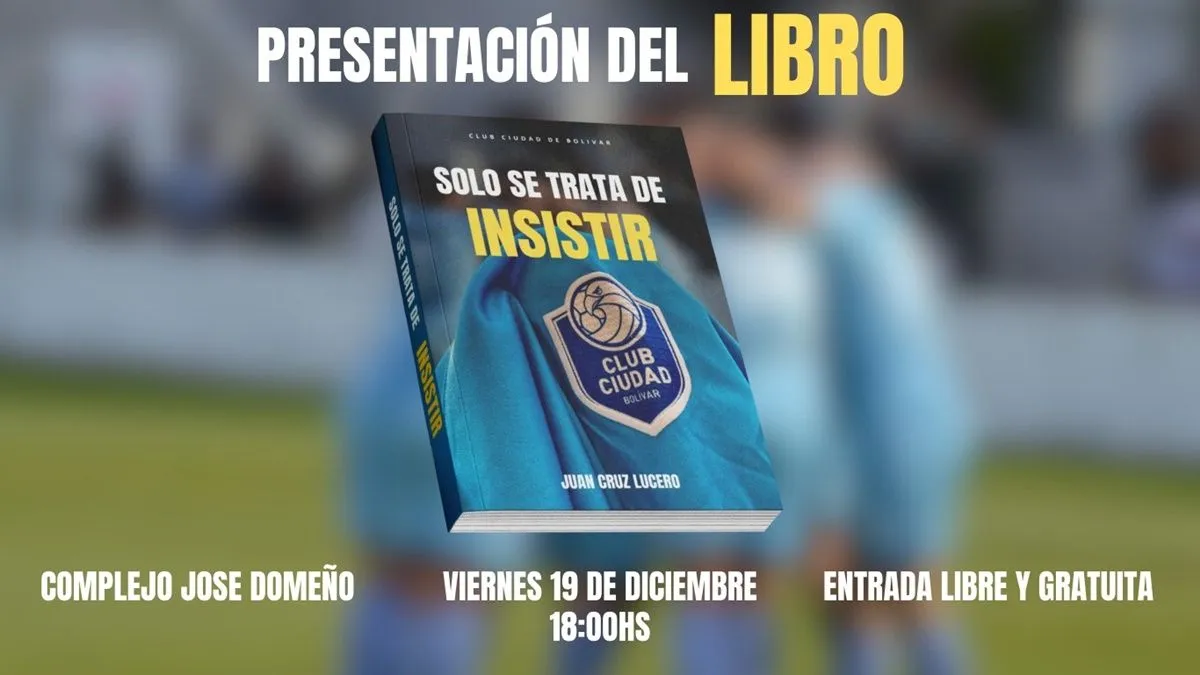 El próximo viernes 19 de diciembre a las 18 horas en el complejo José Domeño, se presentará el libro ‘Solo se trata de insistir’, escrito por Juan Cruz Lucero con el apoyo de la editorial Proyecto Pampa. Se trata de una obra recorre en detalle el ascenso del Club Ciudad de Bolívar a la Primera Nacional, uno de los hitos más importantes en la historia de la institución.