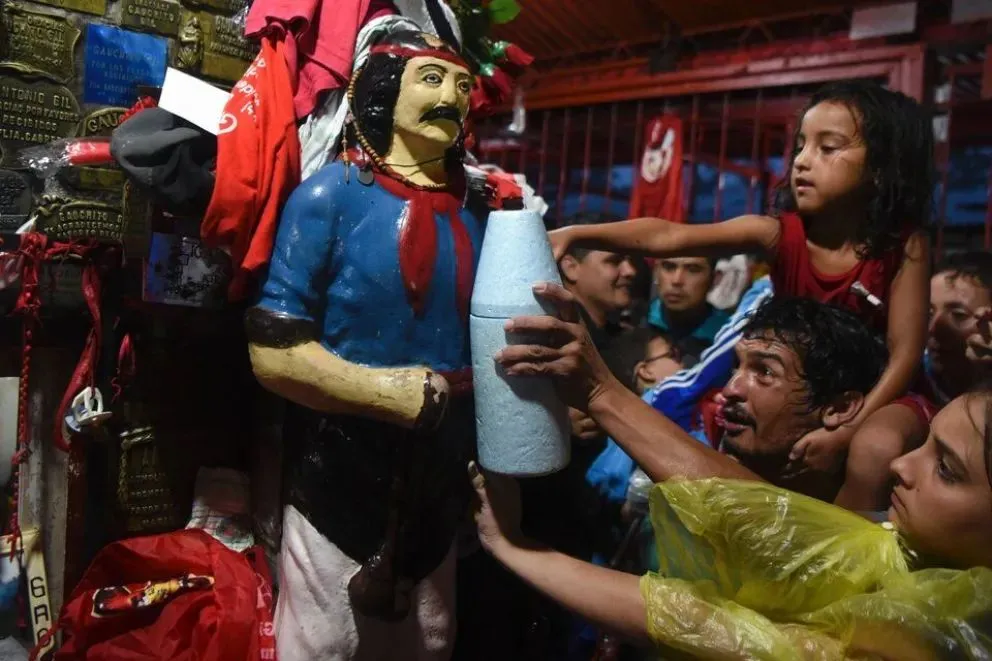 Los devotos tocan bocina al pasar por alguno de los santuarios ubicados a lo largo y ancho del país. Muchas otras personas, se detienen y bajan, le prenden una vela, le acercan unos cigarros o le convidan un trago de vino que cualquier sediento que pase por la zona podrá tomar y devolver luego.