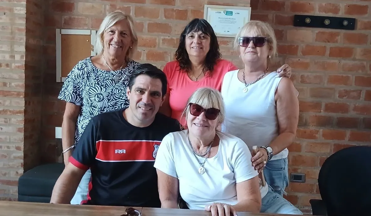 Claudia Mendoza, Raquel Santos, Adriana Larrinaga y Mónica Méndez, representantes de Uniendo Sonrisas, y Sebastián Jornefí, referente de Empleados, dieron detalles de la organización de la actividad deportiva que se realiza cada año en Bolívar con un fin solidario.
