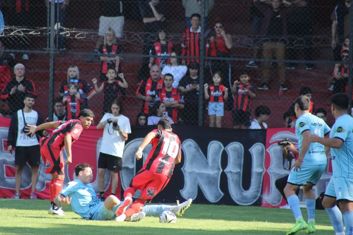 Cerca del final del cotejo, Defensores de Belgrano tenía varios espacios que el "Celeste" aprovechó para desbordar: en una jugada puntual, Mucignat entró al área tras un pase de Duarte, pero se dejó caer y el árbitro le sacó tarjeta amarilla por simular.