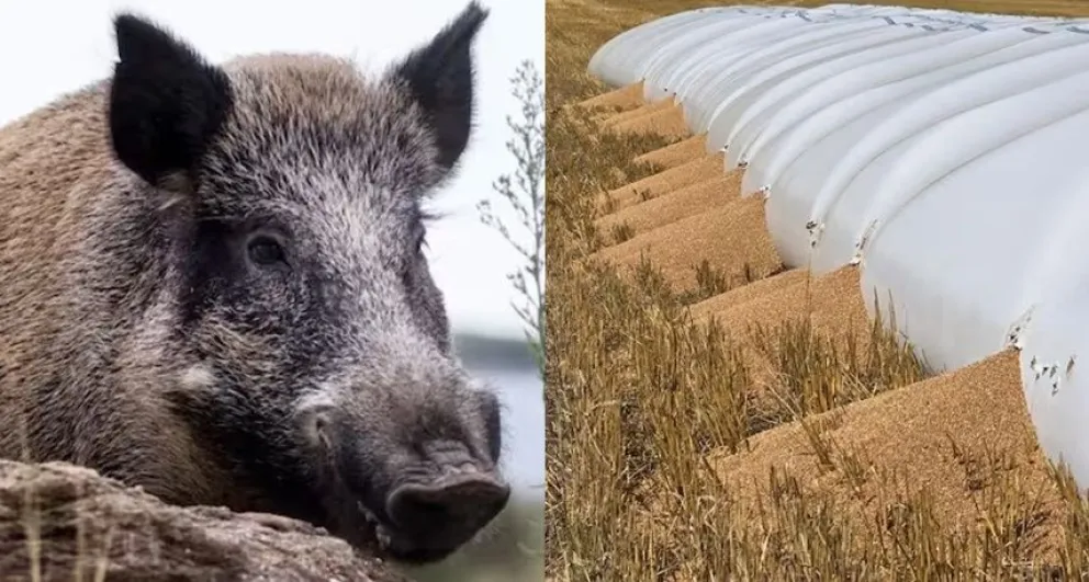 MIRÁ EL VIDEO Jabalíes atacaron y dañaron un silobolsa que contenía más de 200 mil kilos de trigo en un campo