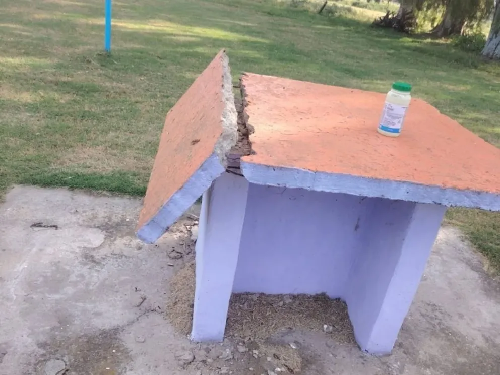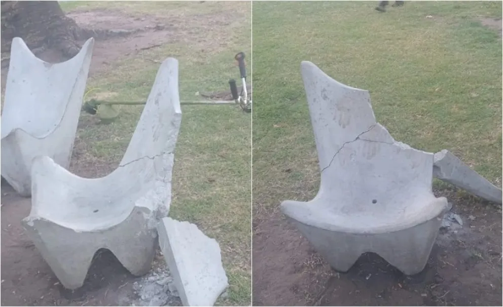 BOLÍVAR ¿Vandalismo? Encontraron partido al medio un banco nuevo que había sido colocado en el Skate Park