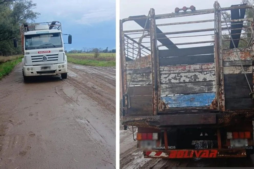 BOLÍVAR Interceptaron un camión que circulaba en infracción por un camino rural posterior a día de lluvia